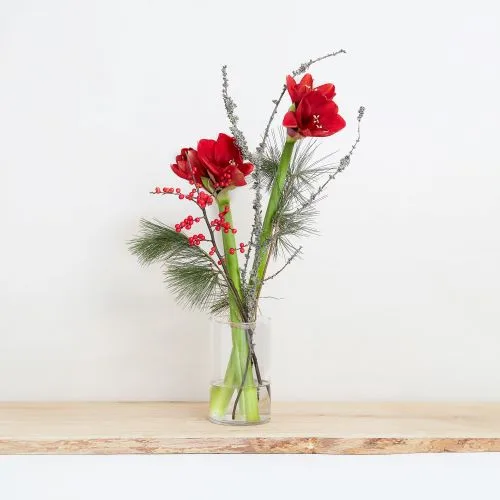 - Une touche festive : associez l’amaryllis à des branches de sapin ou des cônes de pin pour créer un centre de table de Noël spectaculaire. Interflora propose des compositions prêtes à l’emploi, idéales pour des fêtes réussies.