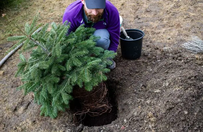 Profitez d’une journée sans gel et sans pluie pour planter votre arbre de Noël. Commencez par creuser un trou trois fois plus volumineux que la motte de terre de votre arbre. Ameublissez la terre au fond du trou de plantation. Si le sol de votre terrain est argileux, vous pouvez incorporer du sable dans votre terre de jardin pour améliorer le drainage.