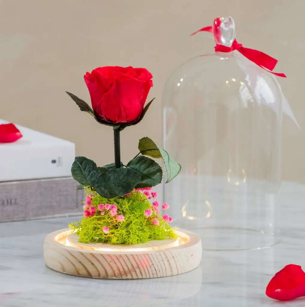 L’entretien d’une rose éternelle n’a rien de compliqué, il vous suffit de la dépoussiérer lorsque c’est nécessaire. Et cette étape est encore plus facilitée avec les roses éternelles sous cloche.