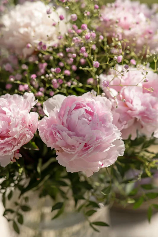 La saison des pivoines blanches commence dès la fin de l’hiver chez les fleuristes et dure tout l’été. Ainsi, les pivoines blanches subliment les bouquets de fleurs, dont les bouquets de mariage, mais aussi les bouquets pour la Fête des mères ou des grands-mères.