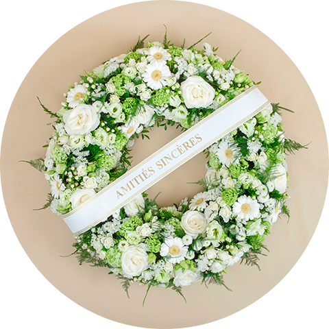 Nous vous suggérons de considérer un bouquet de fleurs, une plante fleurie ou un arrangement floral plutôt que des compositions dédiées à la cérémonie mortuaire. En effet, les compositions comme les coussins de deuil, les gerbes, les raquettes ou les couronnes sont davantage destinées à ce moment particulier.