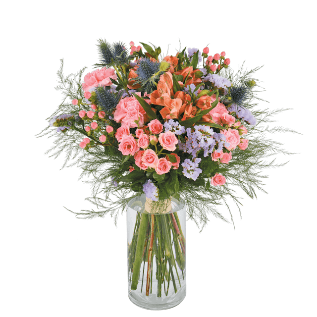 Le visuel du produit floral présenté est contractuel mais, s'agissant d'une création réalisée par un artisan fleuriste sur la base d’un assortiment de fleurs fraîches qui est, par sa nature, artisanale, elle pourra parfois en différer légèrement à la livraison.